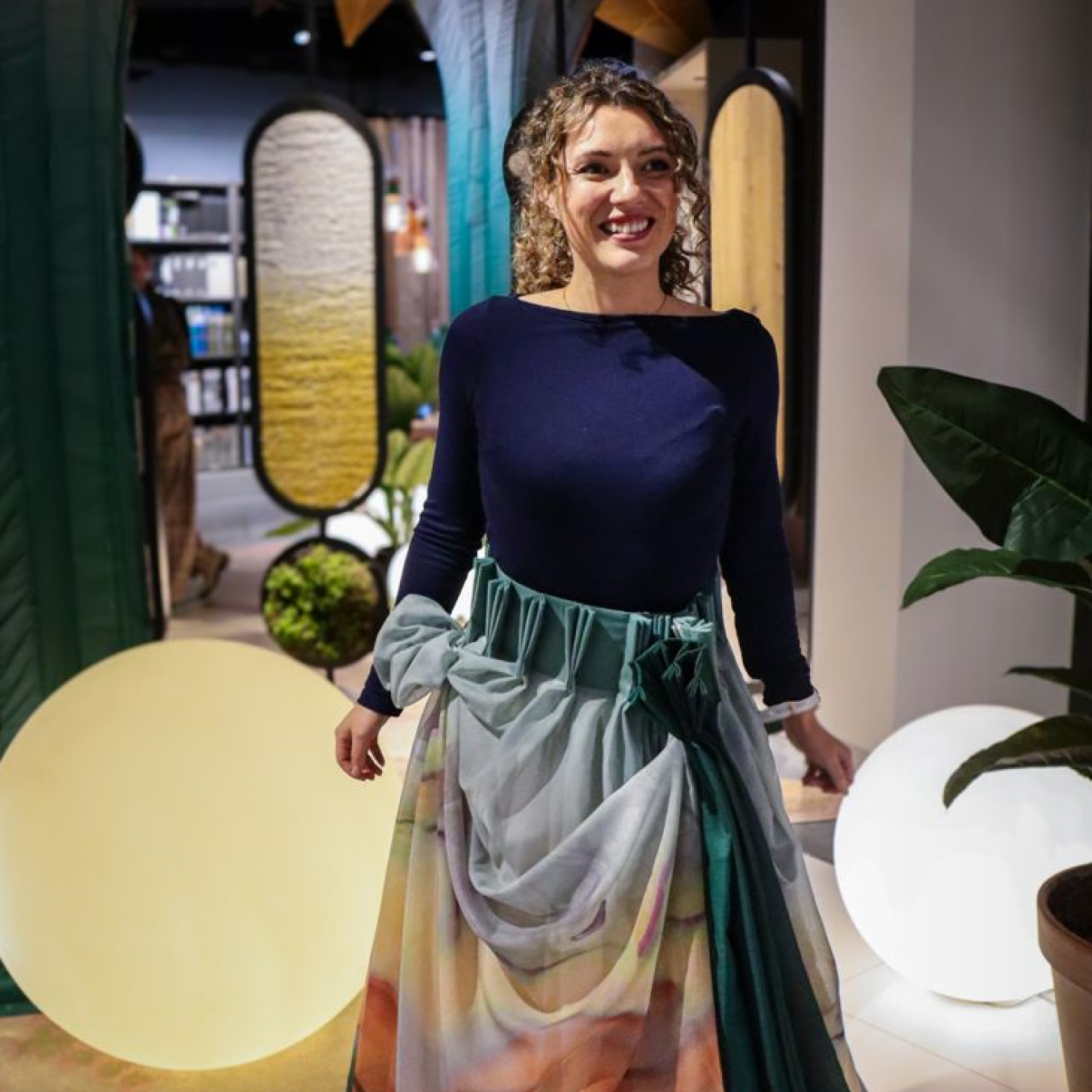 Binnen het project is dezelfde stof op meerdere manieren toegepast. De plooien en beweging van het gordijn komen terug in een rok, zonder het karakter van het materiaal te verliezen.